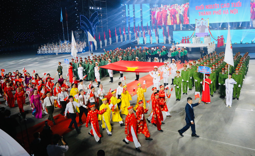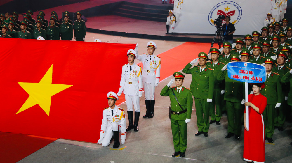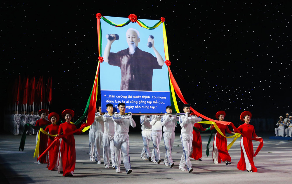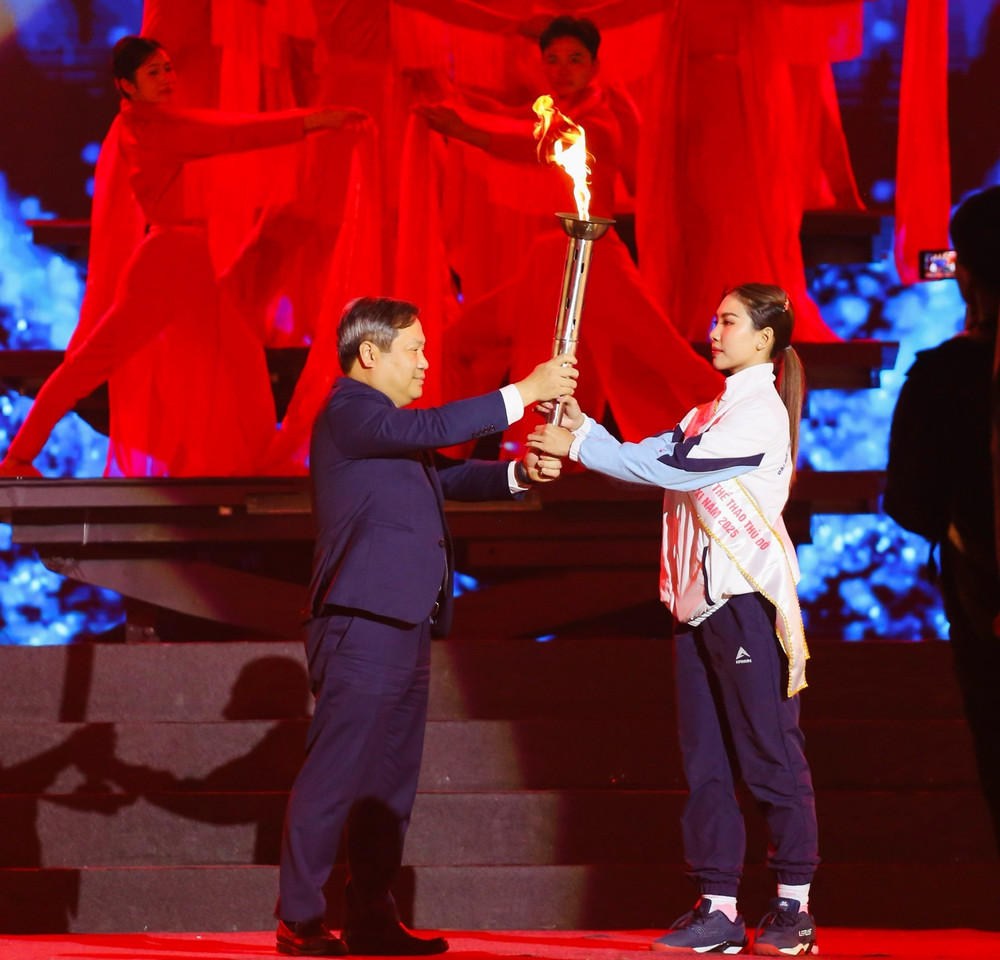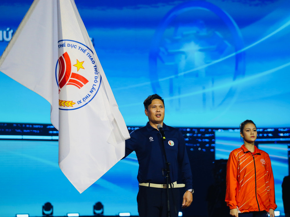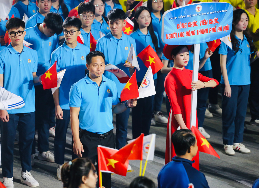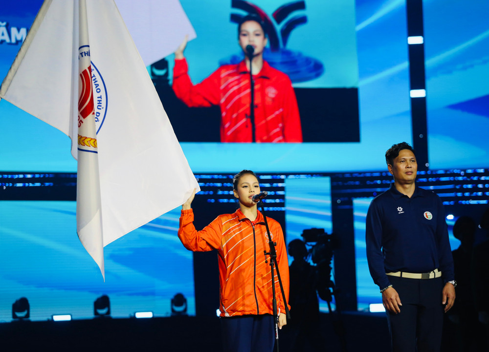 ANTD.VN - Màn thắp sáng đài đuốc được thực hiện trên không trung, kết hợp âm thanh, ánh sáng và các động tác đậm chất nghệ thuật của người thực hiện đã gây ấn tượng mạnh cho khán giả trong lễ khai mạc Đại hội Thể dục thể thao Thủ đô lần thứ XI-2025, tối 15-12.