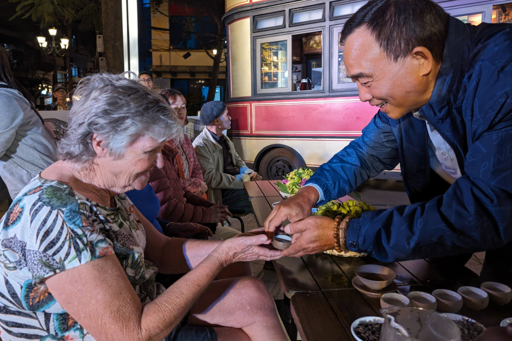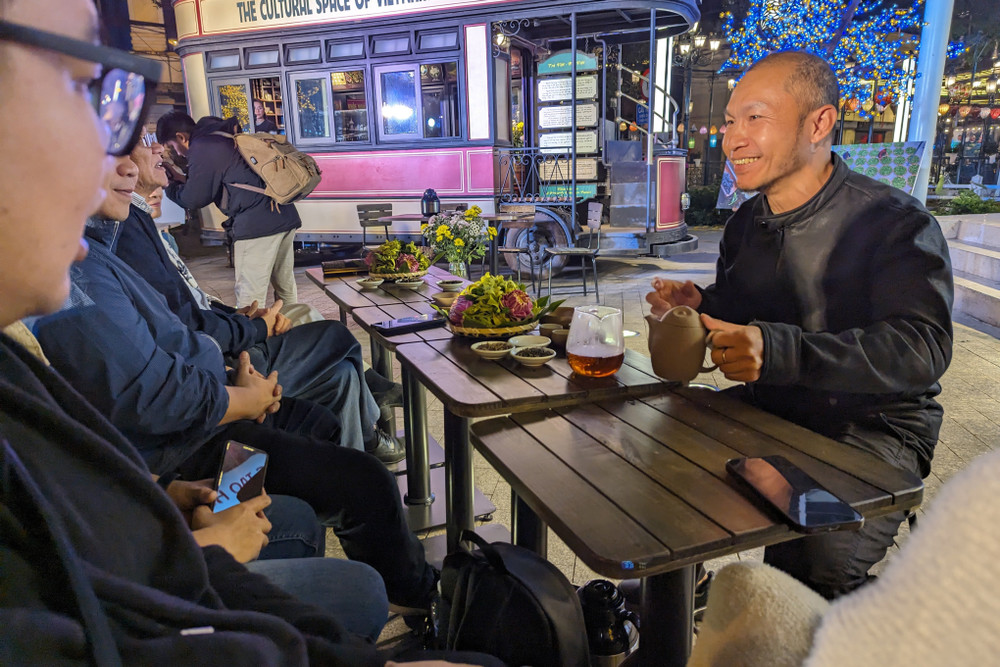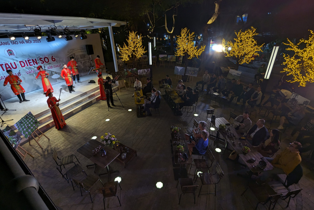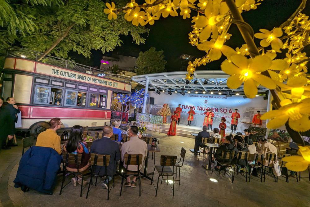 ANTD.VN - Tàu điện bánh hơi, âm nhạc cổ truyền Việt Nam đã được kết hợp độc đáo để giới thiệu trà Shan tuyết cổ thụ của Việt Nam tại Phố Ẩm thực Ngũ Xã mang lại trải nghiệm thú vị cho du khách trong khuôn khổ Lễ hội sáng tạo Hà Nội 2023.