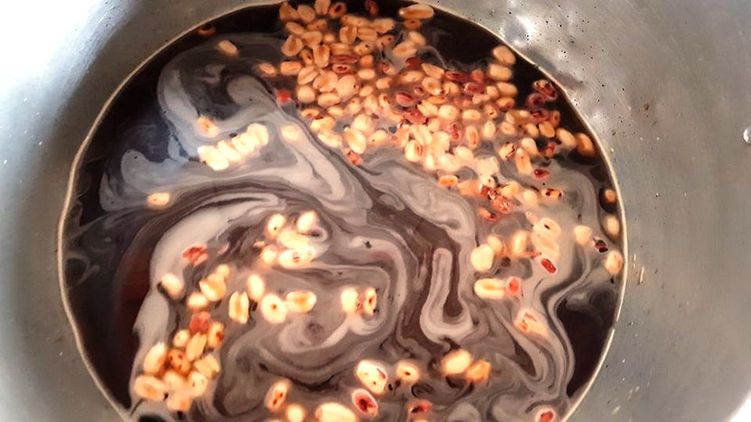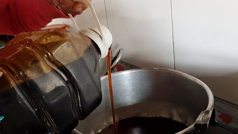 Mật và Lạc rang được cho vào nồi nấu sôi
