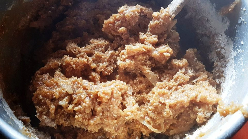 Khi những thứ trên đã tạo thành hỗn hợp đặc sệt, quyện chặt vào với nhau thì bắc xuống cho ra mâm để sẵn hạt vừng trắng đã rang vàng. Đến lúc này, tùy vào sở thích của từng người có thể nhào bánh thành các hình thù mình thích. Để bánh dậy mùi, người làm bánh thường cho thêm gừng tươi giã nát hoặc dừa bào sợi.