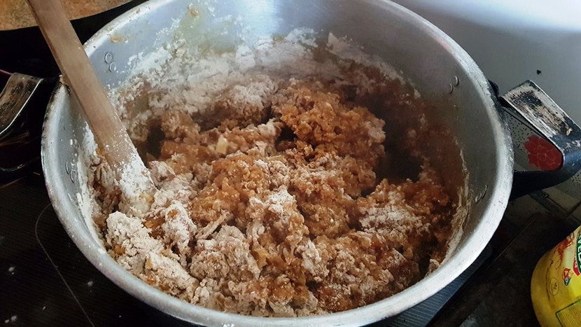 Khi hỗn hợp trong nồi đã hòa quyện là lúc bánh đã chín