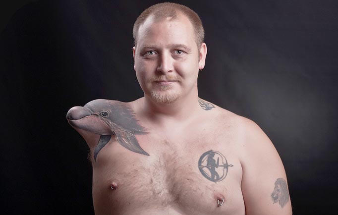 Heine Braeck cho biết: “Khi tôi 13 tuổi, tôi đã cố gắng đi tắt bằng cách trèo qua đầu một chiếc tàu hỏa. Khi nó bắt đầu chuyển động, tôi bị mất thăng bằng và vướng vào một chiếc dây cung cấp điện cho tàu và bị bỏng nặng. Điều đầu tiên tôi nhìn thấy sau cuộc phẫu thuật là cánh tay cụt của mình giống hệt như một đầu con cá heo. Cuối cùng tôi quyết định làm điều gì đó và liên lạc với nghệ sĩ Valio Ska để sắp xếp tiến hành công việc xăm mình. Bạn bè tôi nghĩ rằng điều này thật tuyệt vời và tôi không còn cảm giác chán nản mỗi khi nhìn vào cánh tay cụt của mình nữa”.