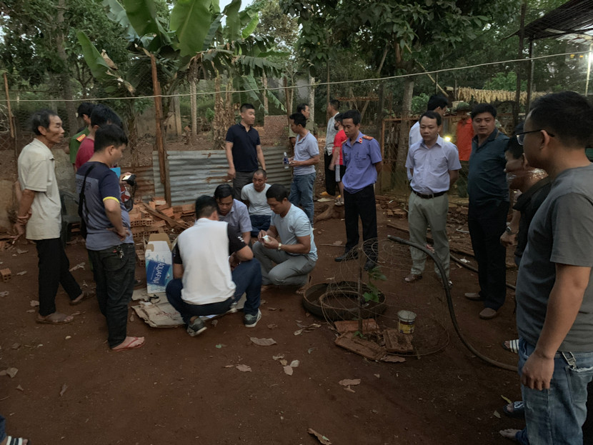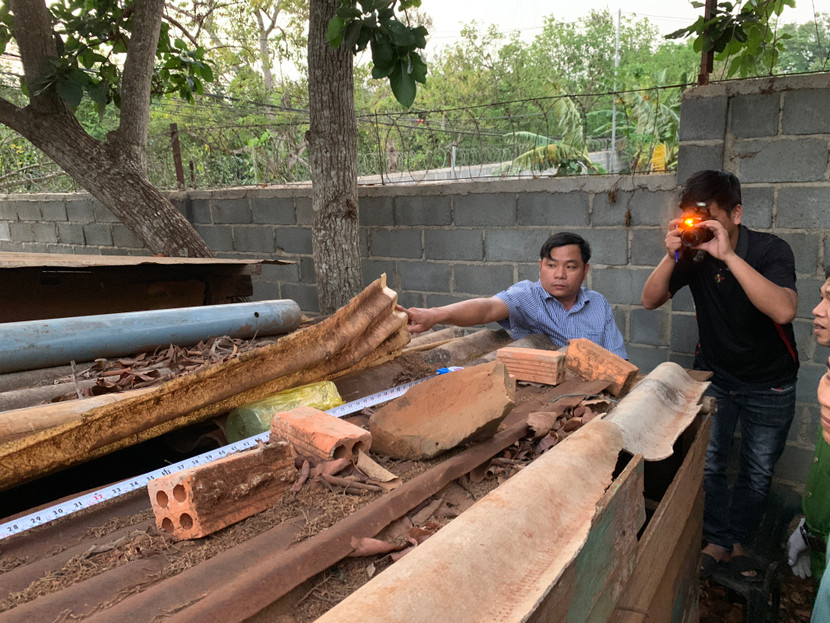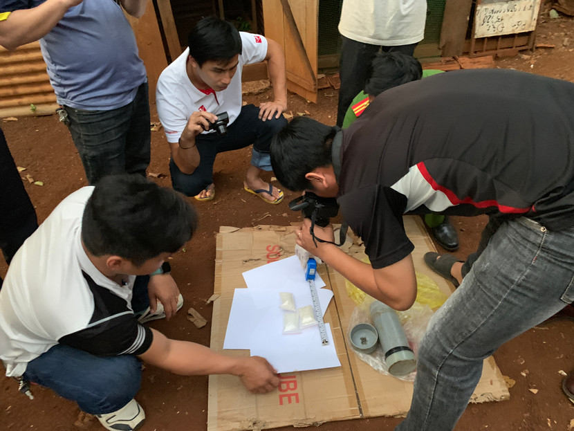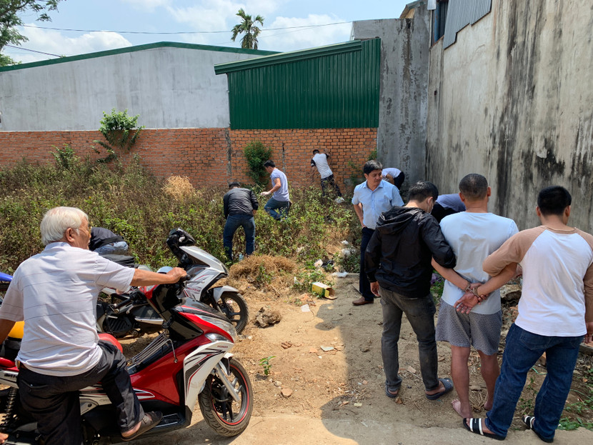 Công an khám xét tại bãi đất trống trước nhà Sang thuê, phát hiện ma tuý đá