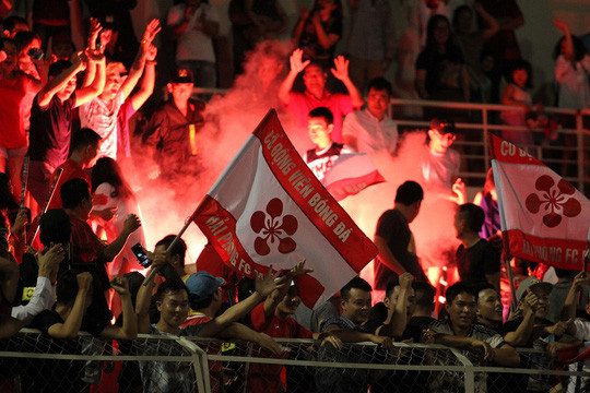 CĐV Hải Phòng đốt pháo sáng trên sân Thống Nhất tối 22-4