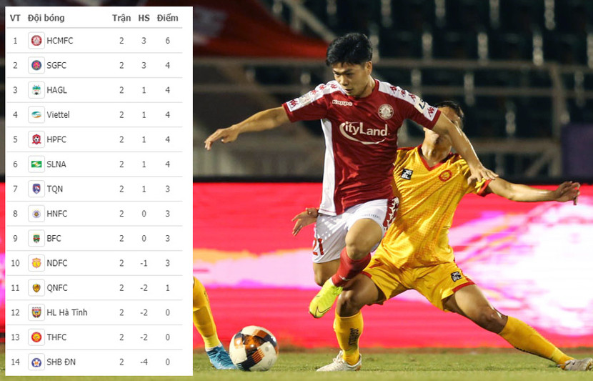 Trong khi đó, cạnh với CLB TP.HCM trên bảng xếp hạng V-League là nhóm 5 đội cùng có 4 điểm gồm Sài Gòn, HAGL, Viettel, Hải Phòng và SLNA.