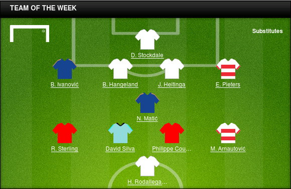 Ở bên phía cánh phải là sự xuất hiện của Branislav Ivanovic. Đây là lần đầu tiên mà anh có tên trong ĐHTB của Premier League ở mùa giải năm nay. Hậu vệ người Serbia đã có một màn trình diễn rất thuyết phục trong chiến thắng 1-0 của Chelsea trên sân của Swansea. Bên cánh đối diện Erik Pieters của Stoke. Cầu thủ Hà Lan này là tác giả của bàn thắng duy nhất trong cuộc đối đầu với Newcastle United.