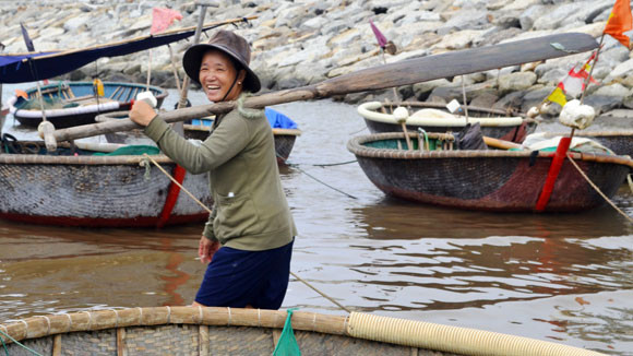 Suýt “nằm” lại biển mấy lần, ấy thế mà bà Thành chẳng hề biết sợ. Mới lật thúng ngày hôm trước, hôm sau người dân làng chài Sơn Trà lại thấy bà vác lưới ra biển như thường. Nhiều hôm đi biển về, bà mệt lử chẳng thiết tha ăn uống, nhưng rồi nhìn đứa con út bị nhiễm chất độc da cam cứ ngây dại như một đứa trẻ, bà lại mím môi gượng dậy để tiếp tục chặng đường mưu sinh.