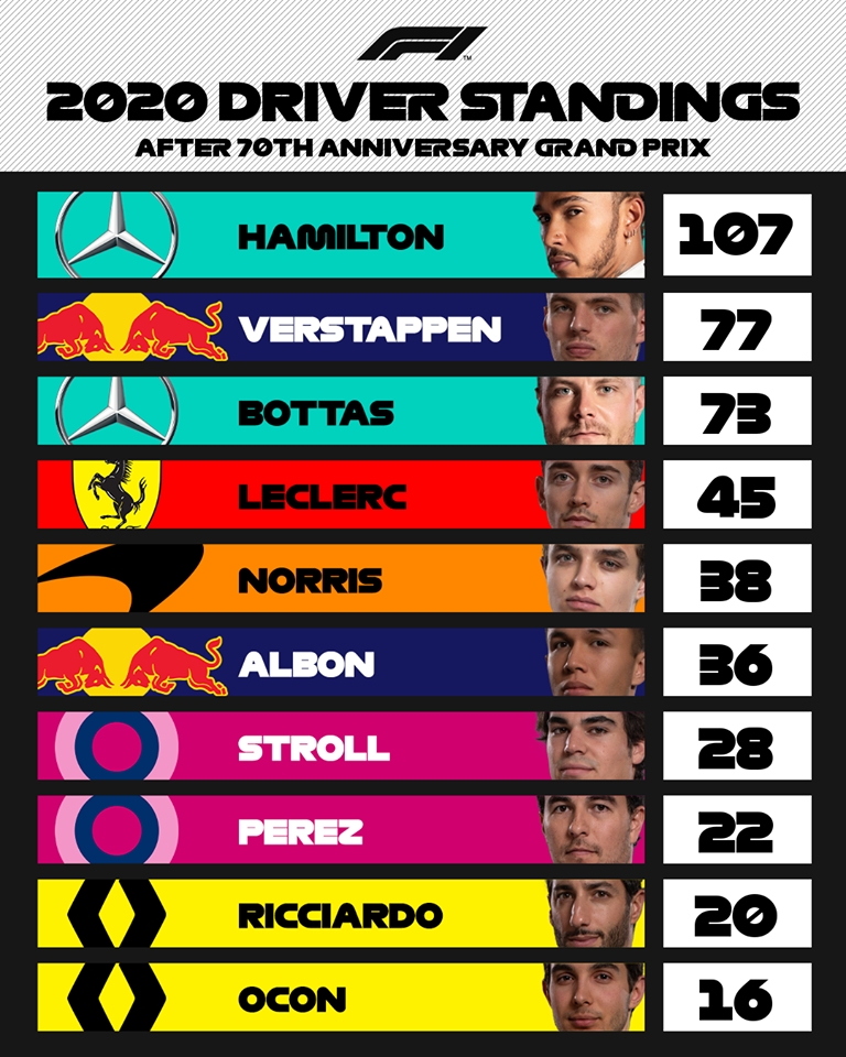 “Tôi sẽ không đua như một bà già” là câu trả lời của Verstappen. Đây là chiến thắng đầu tiên của Verstappen tại đường đua Silverstone và của mùa giải 2020. Kết quả này cũng đưa anh lên vị trí thứ hai trên bảng xếp hạng.