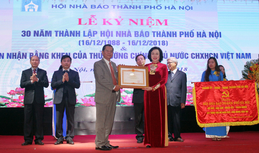 Ngày 15-12, tại Hà Nội, Hội Nhà báo thành phố Hà Nội long trọng tổ chức Lễ kỷ niệm 30 năm thành lập (16-12-1988/ 16-12-2018) và đón nhận Bằng khen của Thủ tướng Chính phủ.
