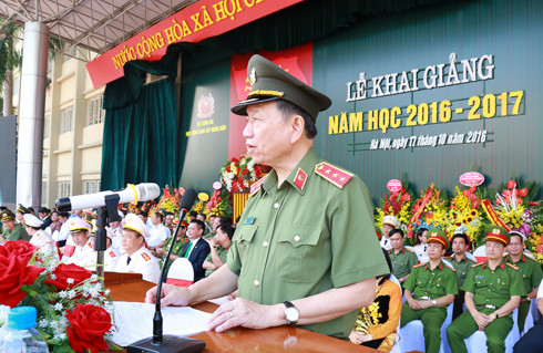 Phát biểu tại lễ khai giảng, Thượng tướng Tô Lâm thay mặt Đảng ủy CATƯ và lãnh đạo Bộ Công an đã biểu dương kết quả đạt được trong năm học vừa qua của Học viện CSND, đồng thời nhấn mạnh một số nhiệm vụ trọng tâm nhà trường cần chú trọng thực hiện trong năm học 2016-2017.