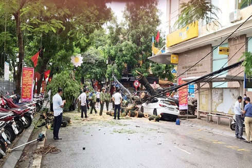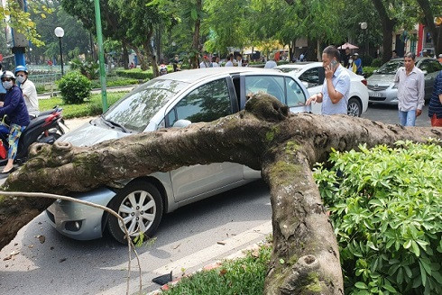 Khoảng 11h ngày 10-10, khi đang di chuyển trên đường Thanh Niên (quận Ba Đình, TP. Hà Nội) qua ngã ba giao cắt với phố Trấn Vũ, một ô tô nhãn hiệu Toyota Yaris mang BKS 30V - 0247 đã bất ngờ bị cây phượng lớn đổ trúng đầu xe. Rất may là cả tài xế trong xe và người đi đường đều không bị thương.