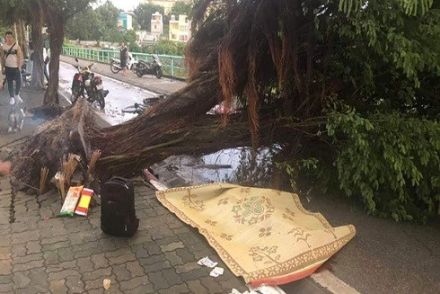 Bên cạnh đó, tại đường Phạm Ngọc Thạnh (quận Đống Đa), một cây đa cổ thụ khác cũng bị bật gốc, đổ chắn ngang đường khiến các phương tiện lưu thông qua đây gặp nhiều khó khăn. Sự cố may mắn không gây thiệt hại về người.