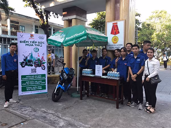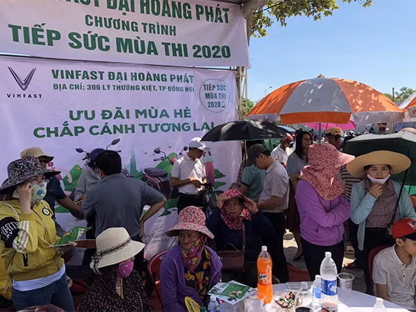Chia sẻ với nỗi lo lắng của các sĩ tử và sự vất vả của các bậc phụ huynh khi phải tham gia kỳ thi cam go trong tiết trời nắng nóng, hãng xe điện VinFast đã triển khai chương trình tiếp sức mùa thi bằng các hoạt động thiết thực như tặng nước, tặng quạt, dựng các lán có mái che… để các phụ huynh có điểm dừng chân tránh nắng hè khi đợi con.