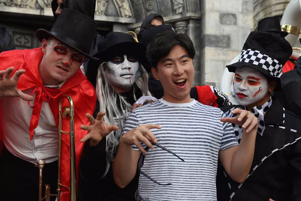 Sự góp mặt của các chàng trai trong ban nhạc đến từ Châu Âu khiến không gian lễ hội nơi đây đậm phong vị Halloween hơn bao giờ hết.