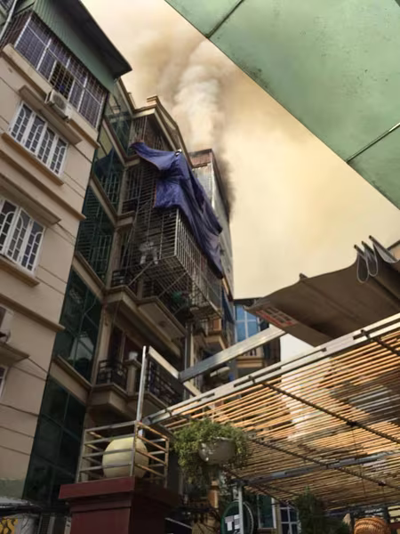 Vào khoảng 8h30, sáng 9-10, người dân phát hiện trên tầng 5 của ngôi nhà xuất hiện khói nghi ngút sau đó nhanh chóng phát cháy lớn. Người dân đã gọi cho lực lượng cứu hỏa để hỗ trợ.