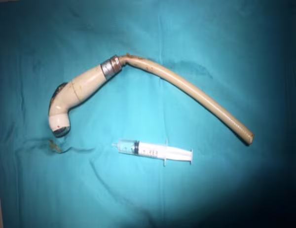 Tiến hành thăm khám hậu môn, các bác sĩ phát hiện có dị vật hình ống silicon, rất chắc, không lấy được qua đường hậu môn, có chảy máu niêm mạc đường ruột. Trường hợp dị vật đại trực tràng lớn như trên rất hiếm gặp, không thể tự đại tiện ra được và gây hậu quả rất nghiêm trọng như tắc ruột, vỡ ruột nguy hiểm đến tính mạng nếu không được xử trí sớm.