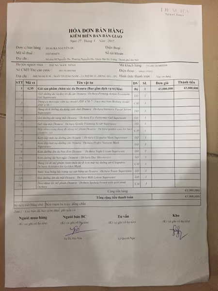 Khách hàng mua bộ sản phẩm với giá 43 triệu đồng