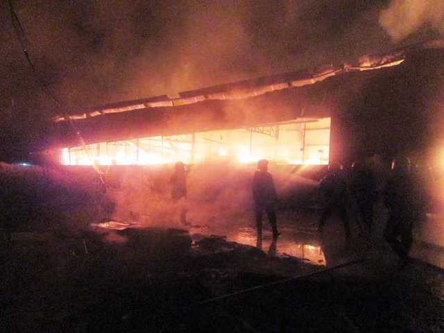 Cơ sở mộc bốc cháy nghi ngút lúc rạng sáng