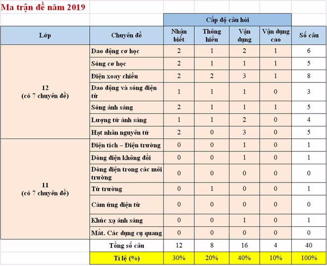 Các câu hỏi lớp 11 chỉ thuộc cấp độ Thông hiểu và Vận dụng. Đề thi không xuất hiện dạng bài mới lạ hoặc các câu hỏi đánh đố thí sinh. Có thể quan sát bảng phân tích ma trận đề dưới đây: