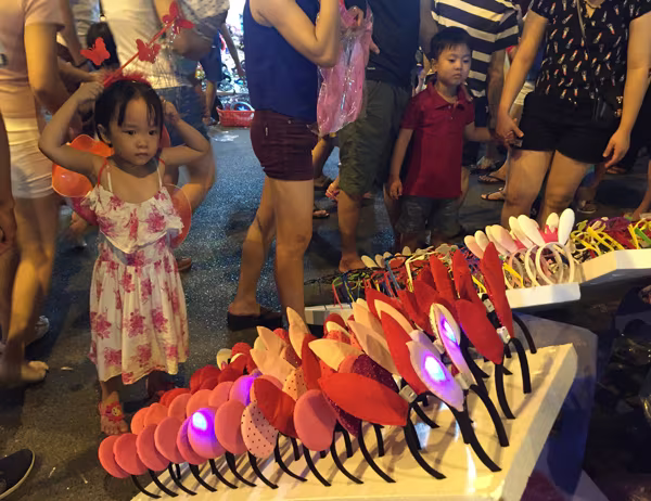 Tối mùng 2-9, đưa 2 đứa con nhỏ đi sắm đồ chơi Trung Thu trên phố Hàng Lược, anh Phạm Tiến Mười ở 75 Cầu Đất, Hoàn Kiếm cho biết: “Mặc dù tôi rất muốn mua đồ chơi trong nước sản xuất cho các cháu vì tính an toàn, nhưng khi ra đây, lũ trẻ lại khá thờ ơ với hàng Việt Nam mà chỉ nằng nặc đòi mua đồ chơi Trung Quốc. Tôi cũng nghe nói nhiều về sự độc hại của loại đồ chơi này, nhưng cũng xác định trẻ chỉ dùng vài bữa là hỏng nên cũng không quá lo ngại. Hơn nữa, muốn mua hàng Việt Nam thì cũng đâu có nhiều lựa chọn?”.