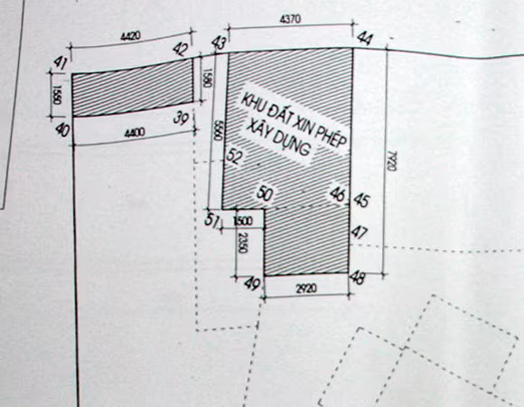 Chưa hết, khi tìm hiểu sâu hơn về Giấy phép xây dựng do UBND quận Hoàn Kiếm cấp cho gia đình ông Thảo - bà Xuân Mai (cấp ngày 21-8-2009) và hồ sơ thiết kế chi tiết kèm theo, phần lối đi chung này cũng được thể hiện rất rõ. Diện tích được phép xây dựng của hộ gia đình bà Xuân Mai được vẽ tách bạch thành 2 phần riêng biệt (phần gạch chéo - ảnh) với khoảng trống (lối đi chung) rõ ràng nằm ở giữa. Điều này là hoàn toàn hợp lý vì cơ quan chức năng của quận Hoàn Kiếm không thể cấp phép xây dựng cho phần diện tích sử dụng chung. Giấy phép xây dựng này cũng ghi rất rõ: “Không mở cửa sổ, đua các chi tiết kiến trúc sang không gian nhà bên” và “phải hoàn toàn chịu trách nhiệm trước pháp luật nếu xâm phạm các quyền lợi hợp pháp của các chủ sở hữu liền kề”. Thế nhưng, với việc bịt lối đi chung, gia đình ông Thảo - bà Xuân Mai dường như đã “quên” mất các quy định này.