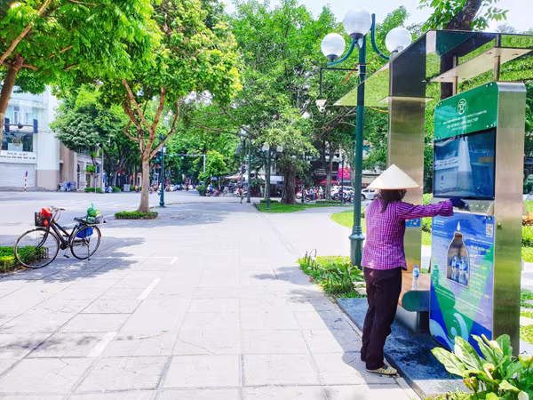Người dân lấy nước tại cây lọc nước thông minh