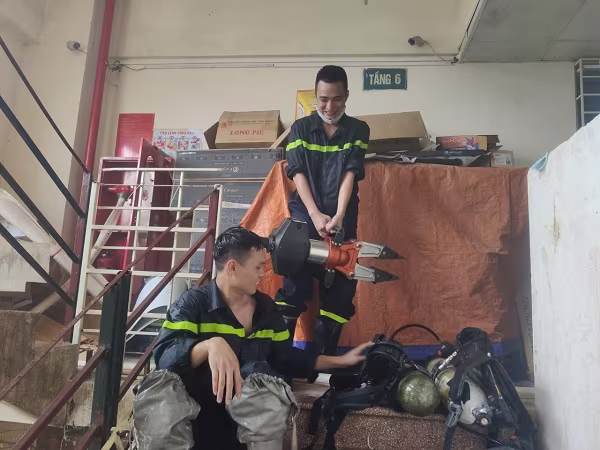 Nhận được thông tin, lực lượng Cảnh sát PCCC và CNCH - CAQ Hoàng Mai đã điều động xe thang và CBCS đến làm nhiệm vụ. Trong cơn hoảng loạn, nhiều người dân đã cầu cứu bởi có 4 người đang mắc kẹt trong thang máy.
