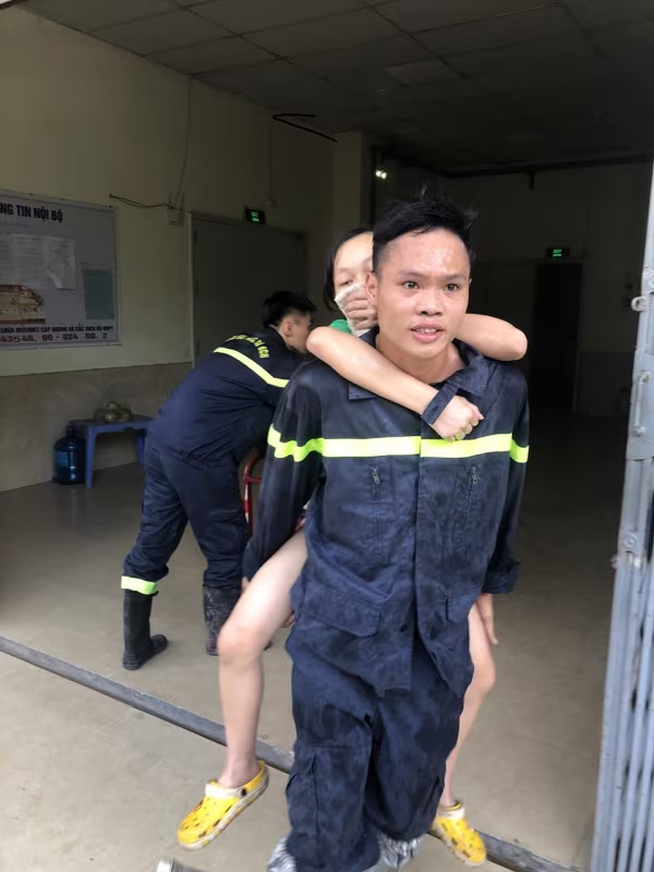 Được biết, khi lực lượng CNCH tiếp cận nhiều cháu bé, người già hoảng loạn nên lực lượng cứu nạn phải cõng hoặc bế xuống đất
