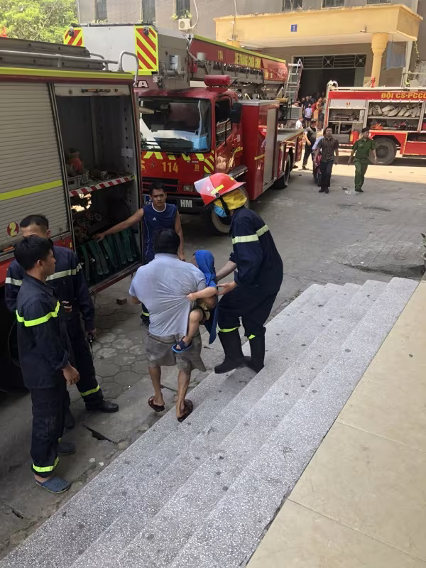 Đồng thời, các mũi công khác tiếp cận tìm kiếm cứu nạn, dùng loa pin hướng dẫn người dân sử dụng khăn mặt, vải ướt để lực lượng cứu nạn đưa xuống nơi an toàn. Nhiều người do hoảng loạn và đuối sức, nên lực lượng cứu nạn đã cõng chạy theo thang bộ xuống đất. Thông tin ban đầu được biết, nguyên nhân vụ cháy do chập điện trong hộp kỹ thuật của chung cư.