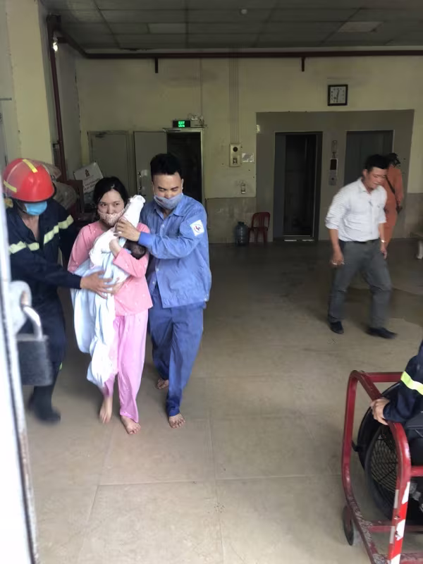 Gia đình cặp vợ chồng có con mới sinh đã được lực lượng cứu hỏa nhanh chóng hỗ trợ với tinh thần cao nhất, để lấy sự an toàn cho hai mẹ con
