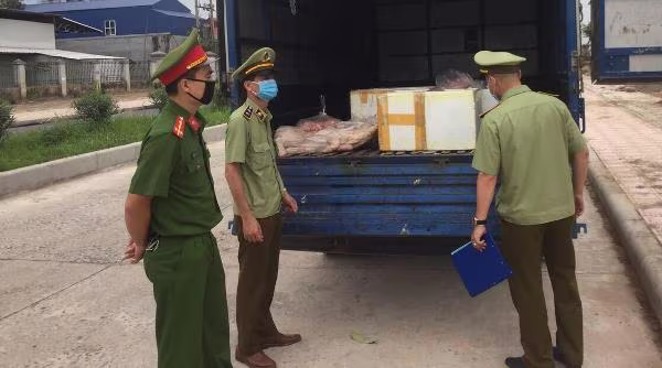 Cụ thể, khoảng 10h ngày 7-5, từ tin báo của người dân, tại cổng khu Công nghiệp đình Trám, huyện Việt Yên, Phòng Cảnh sát môi trường Công an tỉnh chủ trì, phối hợp với lực lượng chức năng phát hiện nghi vấn và kiểm tra xe ô tô BKS: 98C-15742, do Lò Văn Công (SN 2000, trú tại huyện Điện Biên Đông, tỉnh Điện Biên) điều khiển. Lực lượng chức năng xác định trên xe vận chuyện 320 kg thịt lợn đông lạnh.