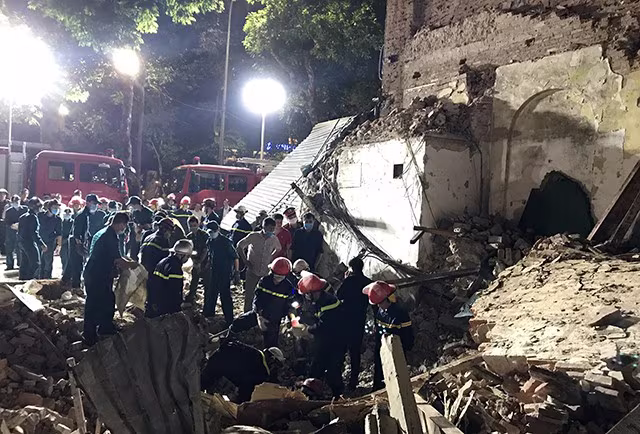 “Rất may sự cố không gây thiệt hại về người, tuy nhiên do khối lượng gạch vỡ vụn lớn đè lên nhiều miếng tôn, thép nên việc dọn dẹp phải mất gần 7 tiếng mới kết thúc.", một cán bộ thuộc lực lượng CNCH - CAQ Hoàn Kiếm cho hay.