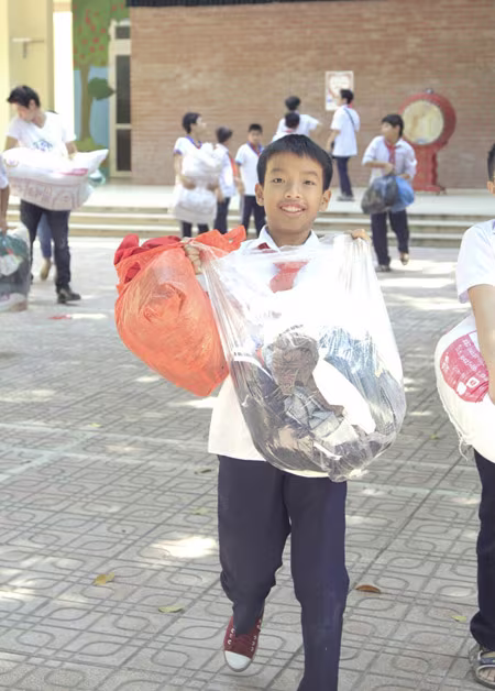 Tại trường THCS Phú Đô, có em đã mang 35 bộ quần áo đến quyên góp