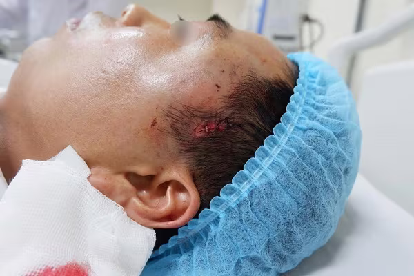 Nam thanh niên nhập viện với vết mổ độn thái dương đang chảy máu