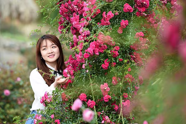 Tháng 4 cũng là mùa hồng cổ Sa Pa cựa mình “thức giấc”. Hơn 800 gốc hồng quý đẹp tựa tranh vẽ được khu du lịch góp nhặt, ươm trồng và kỳ công chăm sóc dọc tuyến tàu hỏa leo núi Mường Hoa, trong vườn hồng thơm ngát tại chợ vùng cao và khu vườn hoa tam giác mạch.