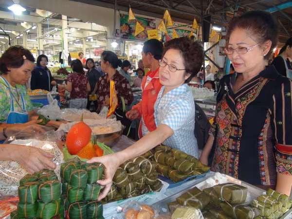 Chị Nguyễn Mai Hương, một khách hàng cho biết: Tôi sống ở Pattaya nhưng lần nào qua đây cũng cố gắng đến chợ để mua những món ăn Việt về cho các con. Nhất là giò chả ở đây ăn rất mềm, ngon, bánh chưng cũng rất ngon, mang đậm hương vị quê nhà.
