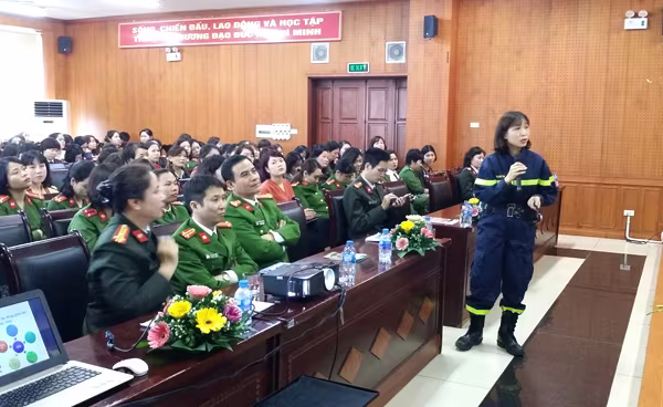 Báo cáo viên chia sẻ kiến thức về kỹ năng thoát hiểm, thoát nạn và phòng chống cháy nổ
