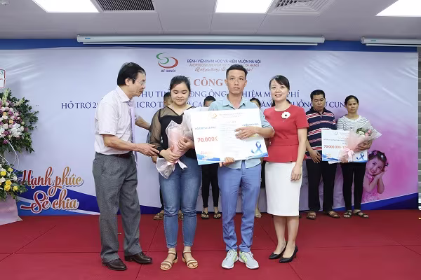 Cũng tại buổi lễ, ngoài việc công bố và trao quyết định 10 ca TTTON miễn phí, Bệnh viện đã trao hỗ trợ 20 ca mổ nội soi thăm dò buồng tử cung miễn phí (nữ) và 20 ca mổ MicroTESE miễn phí (nam) với giá trị tương đương 14 triệu đồng/ca.
