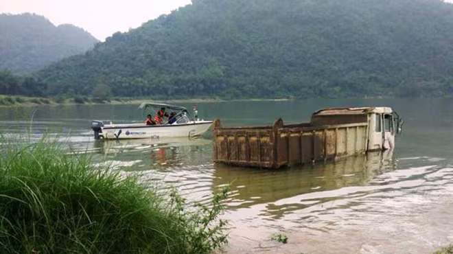 Khu vực có các xe tải, máy xúc bị nước hồ nhấn chìm là vùng lòng hồ của dự án Nhà máy thủy điện Cẩm Thủy 1. Những phương triện trên là của một đơn vị trước đó được cấp phép khai thác mỏ cát.