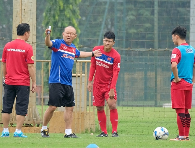 HLV Park Hang-seo và các học trò trong buổi tập sáng nay 7-11 (Ảnh: Vũ Vy)