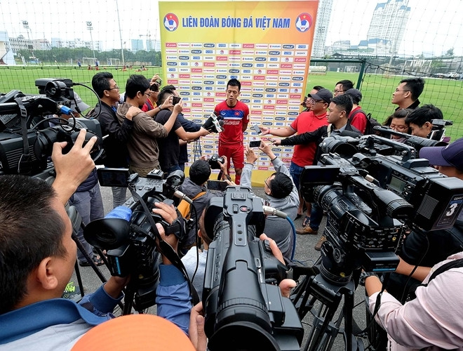 Văn Quyết đại diện ĐT Việt Nam trả lời phỏng vấn (Ảnh: Vũ Vy)