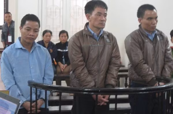 Trần Văn hùng (giữa) cùng đồng phạm tại phiên tòa
