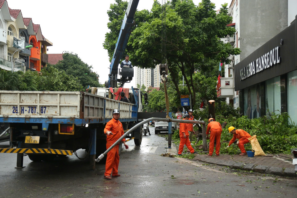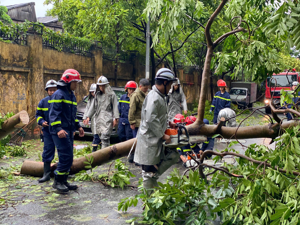 Dọn dẹp cây xanh gãy đổ la liệt sau bão số 3, thông đường sớm nhất