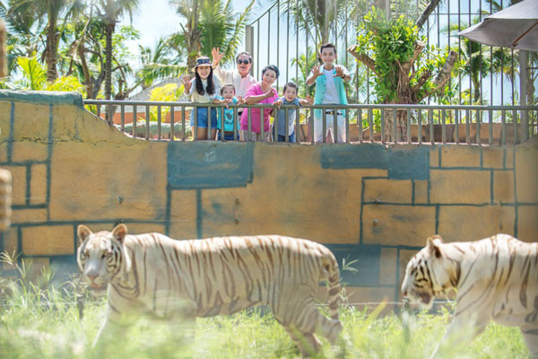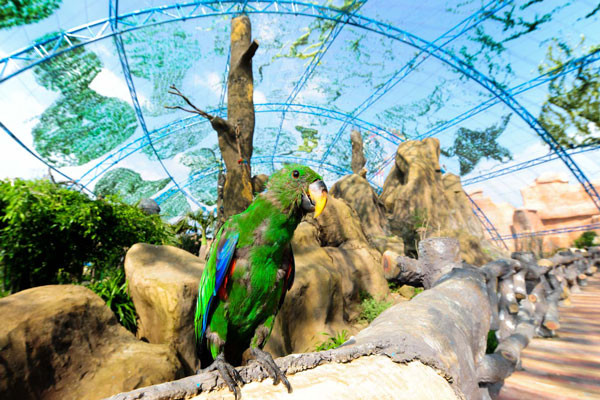 Tại đây, du khách có thể tận tay chạm vào những chú vẹt xanh lém lỉnh, cùng biểu diễn với hồng hoàng, đại bàng trắng trong chương trình biểu diễn động vật công phu, vui nhộn.
