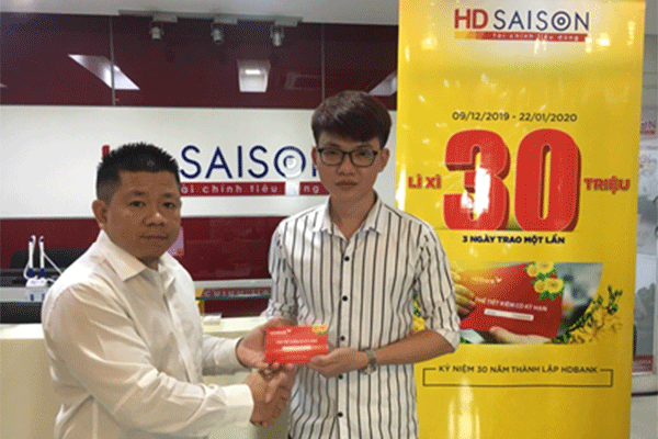 Cứ 3 ngày HD SAISON tổ chức một lễ quay số để xác định khách hàng may mắn được tặng sổ tiết kiệm HDBank trị giá 30 triệu đồng. Đến nay, HD SAISON đã tổ chức lễ trao giải cho 10 khách hàng đầu tiên: