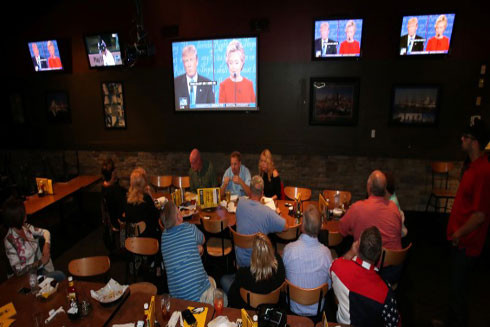 Người dân Mỹ theo dõi cuộc tranh luận trực tiếp giữa 2 ứng cử viên Tổng thống Hillary Clinton và Donald Trump