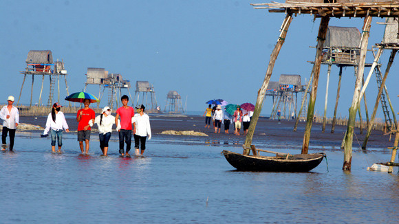 Dân biển “ăn sóng, nói gió” thật lòng mời khách: “Chú không ngại tôi mời các chú tối lên lều làm tý đồ biển nhâm nhi”. Chủ đã thật lòng rồi thì khách khước từ cũng khó, mà muốn khám phá cuộc sống về đêm ở làng trên biển Đồng Châu, cảm giác sống trên lều ngao thì phải ngồi trên đó mới thấy hết. Mải mê, ngắm nhìn từ ô cửa nhỏ ra bốn bên trong đêm, những lều ngao hắt ánh đèn lung linh dưới làn sóng vỗ miên man. Mơ hay tỉnh đây, khi vừa chiều qua dưới chân ta còn là bãi cát dài với từng vuông ngao đều tăm tắp, sáng sớm nay nước đã ì oạp dưới sàn lều. Chủ lều bảo, bước nhè nhẹ theo từng bậc thang tre, xuống thuyền nan sẽ đưa khách đi thăm khắp làng trên biển. Và đợi khi thủy triều rút nước, nhịp sống như hôm qua sẽ lặp lại trên dải cát dài vô tận. Và cánh đồng Đồng Châu cho ta thêm trải nghiệm về cuộc sống mặn mòi muối biển, từ những ngôi làng cắm mình trên sóng nước mênh mông.