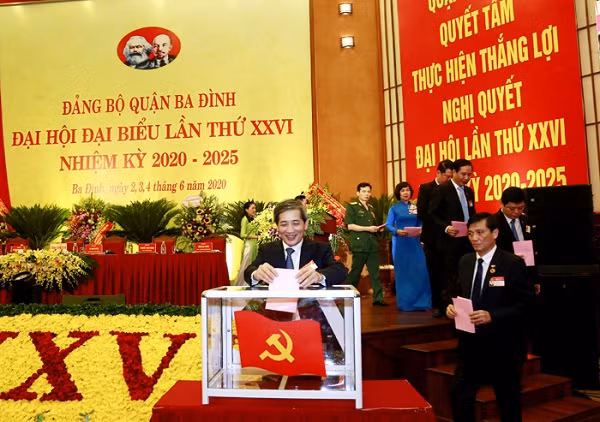 Các đại biểu bỏ phiếu bầu Ban Chấp hành Đảng bộ quận Ba Đình khóa XXVI, nhiệm kỳ 2020-2025