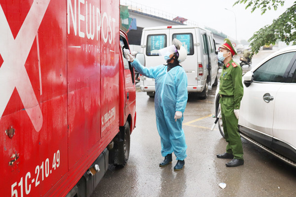 Các lực lượng tham gia chốt giám sát phòng chống dịch Covid-19, làm nhiệm vụ phân luồng giao thông