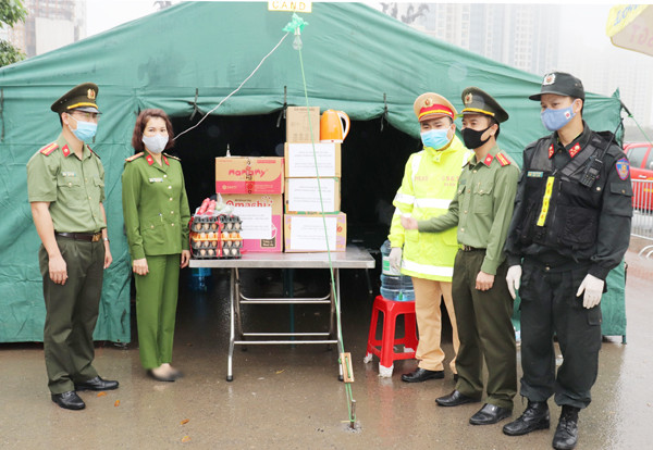 Trong chiều 3-4, chỉ huy CAQ, đại diện Hội phụ nữ, Đoàn thanh niên đã trao tặng chốt số 21 của CATP, đóng tại khu vực chân cầu Thăng Long, nằm trên địa bàn quận Bắc Từ Liêm hướng ra ngoại thành mỳ tôm, trứng gà, khăn khử khuẩn, ấm đun nước và nước tinh khiết đóng chai, nhằm góp phần đủ lương thực, nước uống cho chốt dã chiến.
